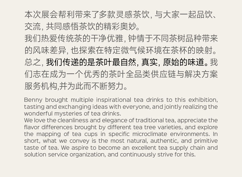 作為一家專業的餐飲用茶與解決方案服務機構,各類型的精制茶葉是幫利的產品核心。 這些茶葉產品包括中國傳統六大茶類及世界主要茶葉產區的茶葉,通過幫利專業技術人員的拼配與調配,這些茶葉產品被制作成包括餐飲用茶、袋泡茶、花果茶、三角茶包、功夫茶等相關產品面向連鎖茶飲、咖啡、中餐、西式快餐、火鍋,以及各類型含茶瓶裝飲料,出現在各類型生活場景中...